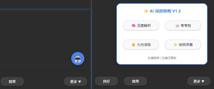 既然单一的问法太死板,我们就要把这个按钮升级为一个“智能指令窗口”。我们可以给卡片背面增加一个微型菜单,或者一组快捷指令按钮。这样你就可以根据卡片内容的难易程度,选择不同的 AI 处理方式。