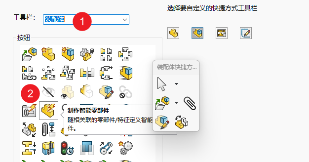 - 点击装配体—>制作智能零部件。