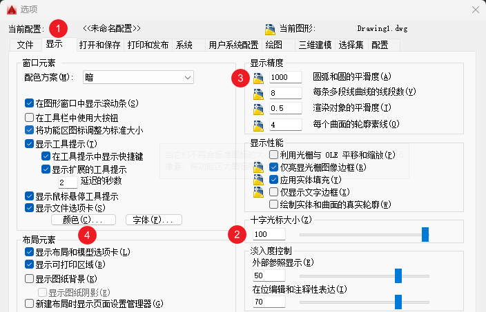 - 圆弧和圆的平滑度: “显示”选项卡 -> “显示精度”。