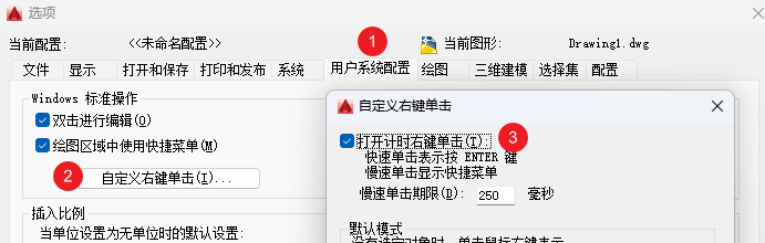 - 右键功能自定义: “用户系统配置”选项卡 -> “右键单击自定义”。