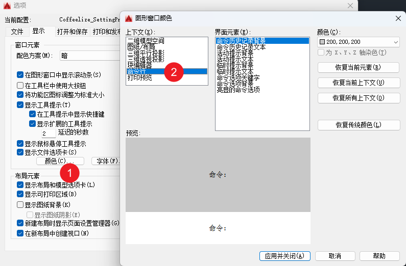 可以直接输入命令 OP (Options) 打开选项面板,按以下清单进行设置:
