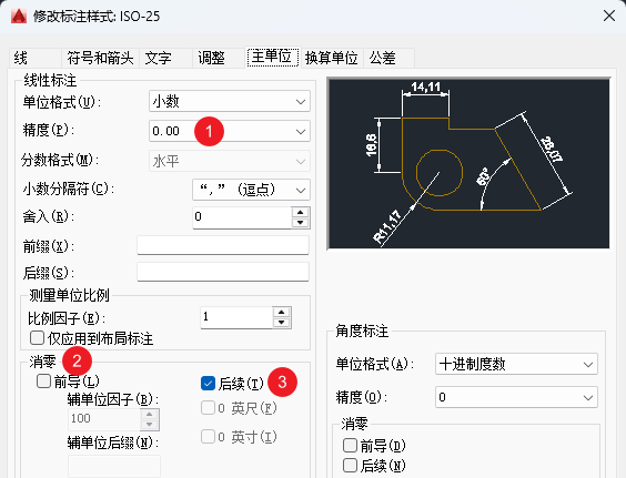 0.00,绘制系统流程图(例如 P&ID)时可设为0即可。 - 消零 (Zero Suppression):