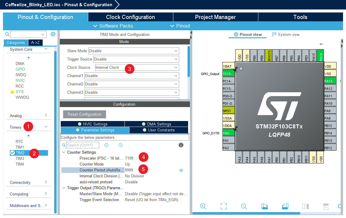 - 勾选 TIM2 global interrupt 后面的 Enabled。(不勾这个,定时器只会数数,不会通知 CPU)
