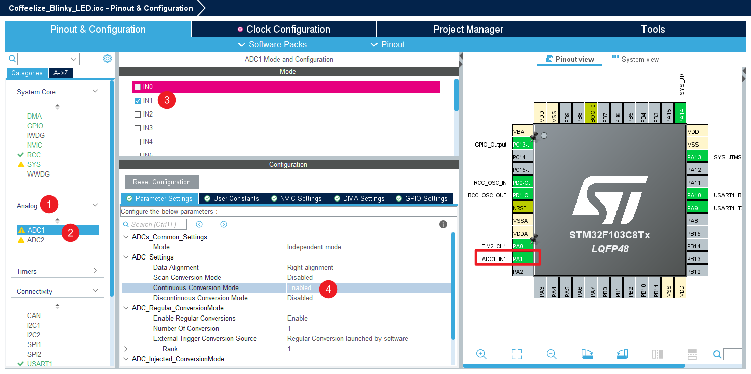 - 在左侧点击 Analog -> ADC1。
