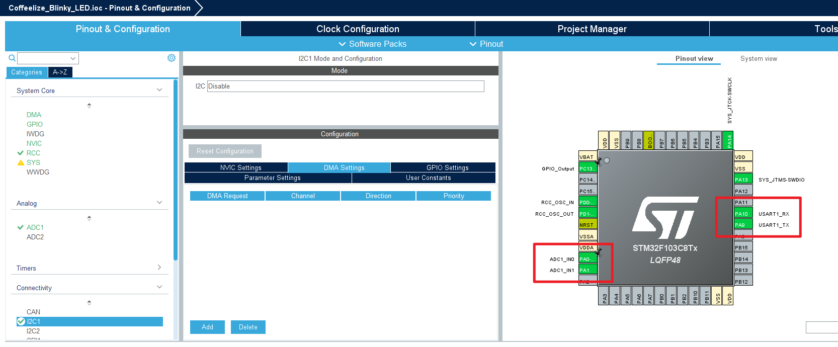 这里我们使用 ZZZ-18-ADC多通道采集、[[ZZZ-19-ADC采样数据滤波]] 中对单片机的配置【两个传感器、串口通讯、扫描模式 (Scan) + 循环模式 (Circular) + DMA】