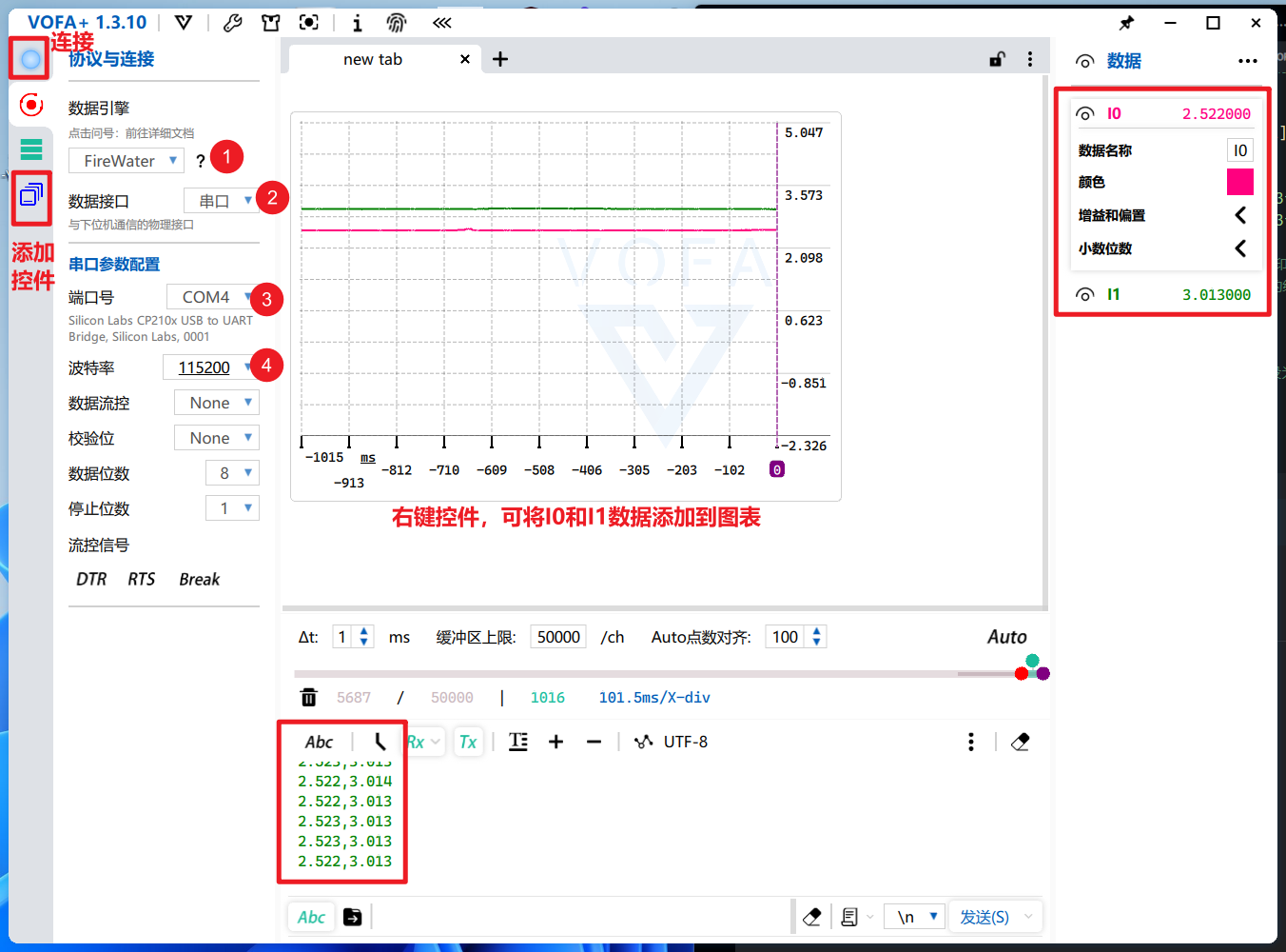 在工业开发(如 CEMS)中,VOFA+ 配合串口(UART)简直是“神兵利器”。它能把枯燥的数字变成实时的波形图,让你一眼看出传感器的数据稳不稳定、有没有噪声。