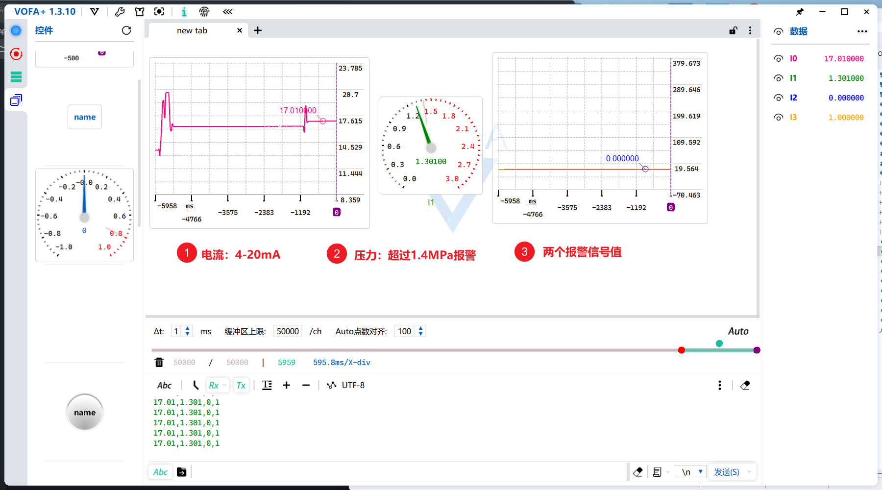 我们将之前的代码升级,加入电流换算、压力转换(假设量程 0-1.6MPa)以及报警逻辑。