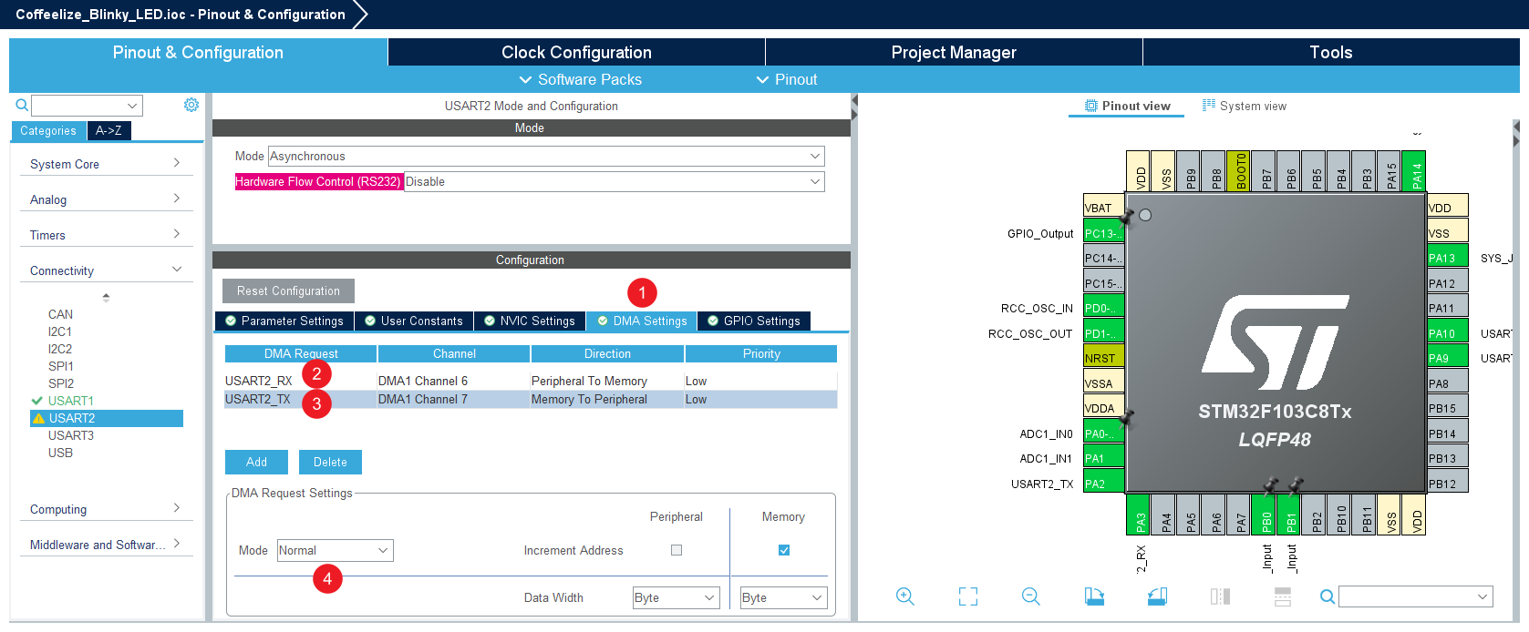 - 添加 USART2_RX 和 USART2_TX。