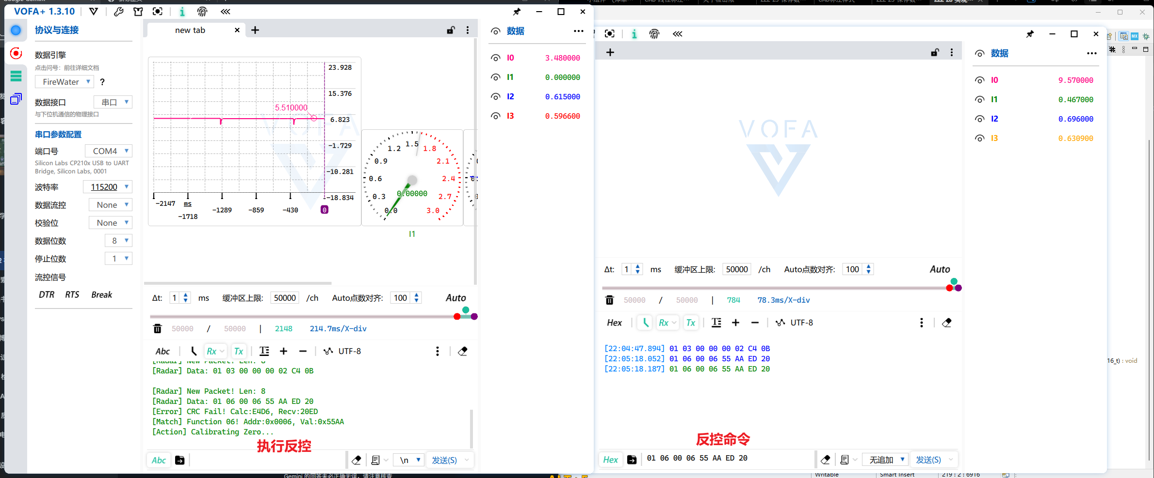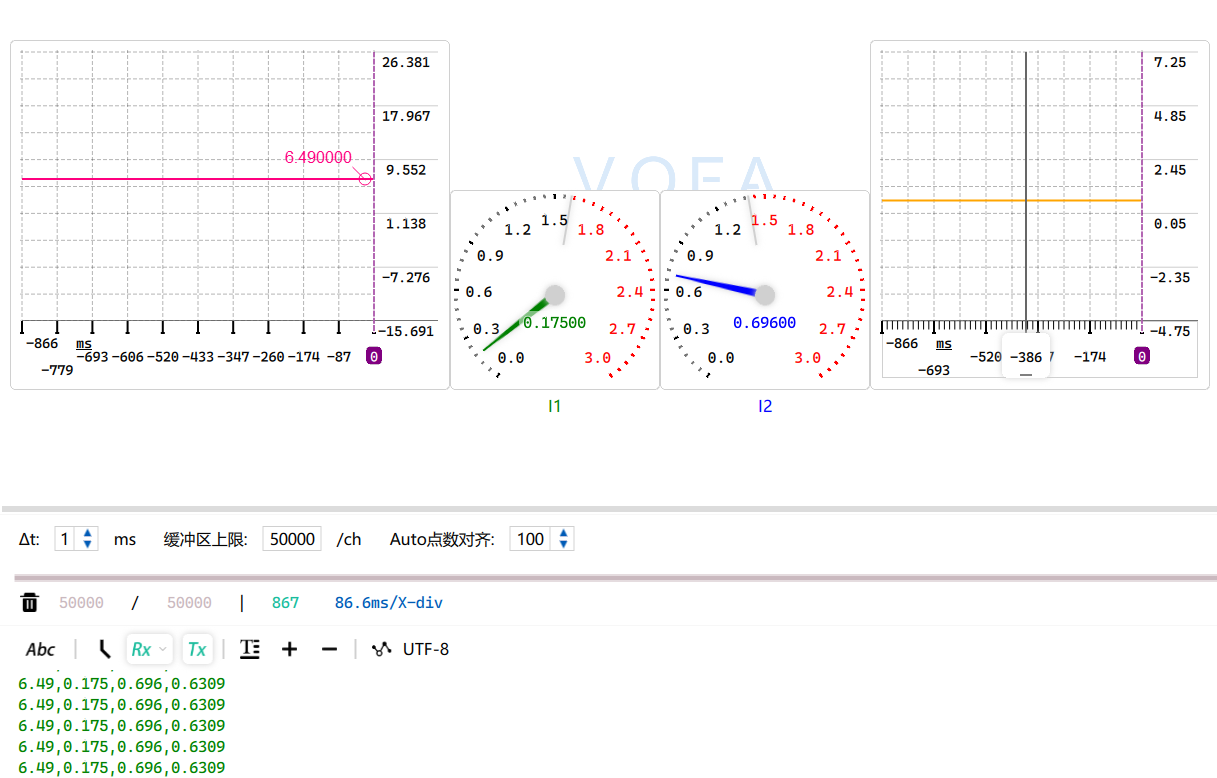 printf 文本和 VOFA+ 绘图。它相当于仪表的“黑匣子”,让你看到内部逻辑。
